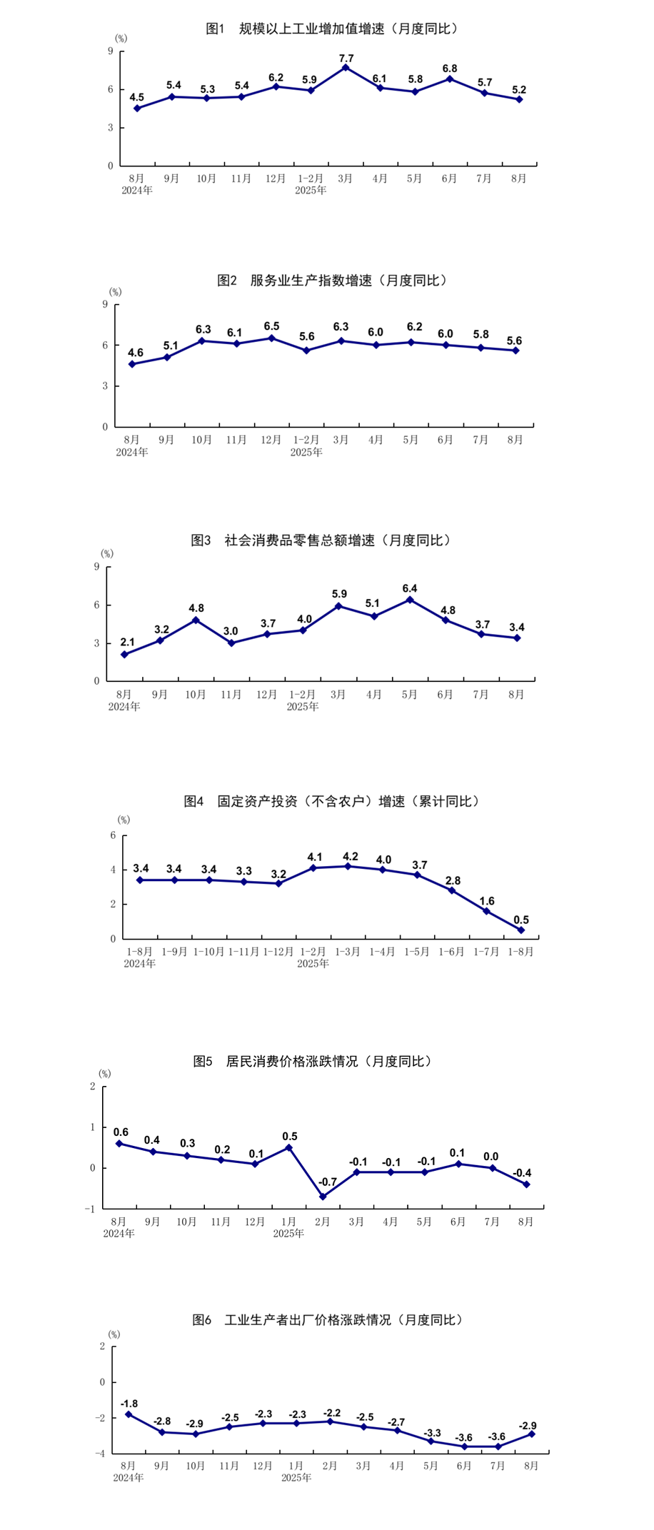 leyu乐鱼官方网站8月份,在以习同志为核心的党中央坚强领导下,各地区各部门认真贯彻落实党中央、国务院决策部署,坚持稳中求进工作总基调,完整准确全面贯彻新发展理念,加快构建新发展格局,积极强化宏观政策调节,纵深推进全国统一大市场建设,着力做强国内大循环,生产需求基本平稳,就业物价总体稳定,新动能培育壮大,国民经济保持总体平稳、稳中有进发展态势。  8月份,全国规模以上工业增加值同比增长5.2%